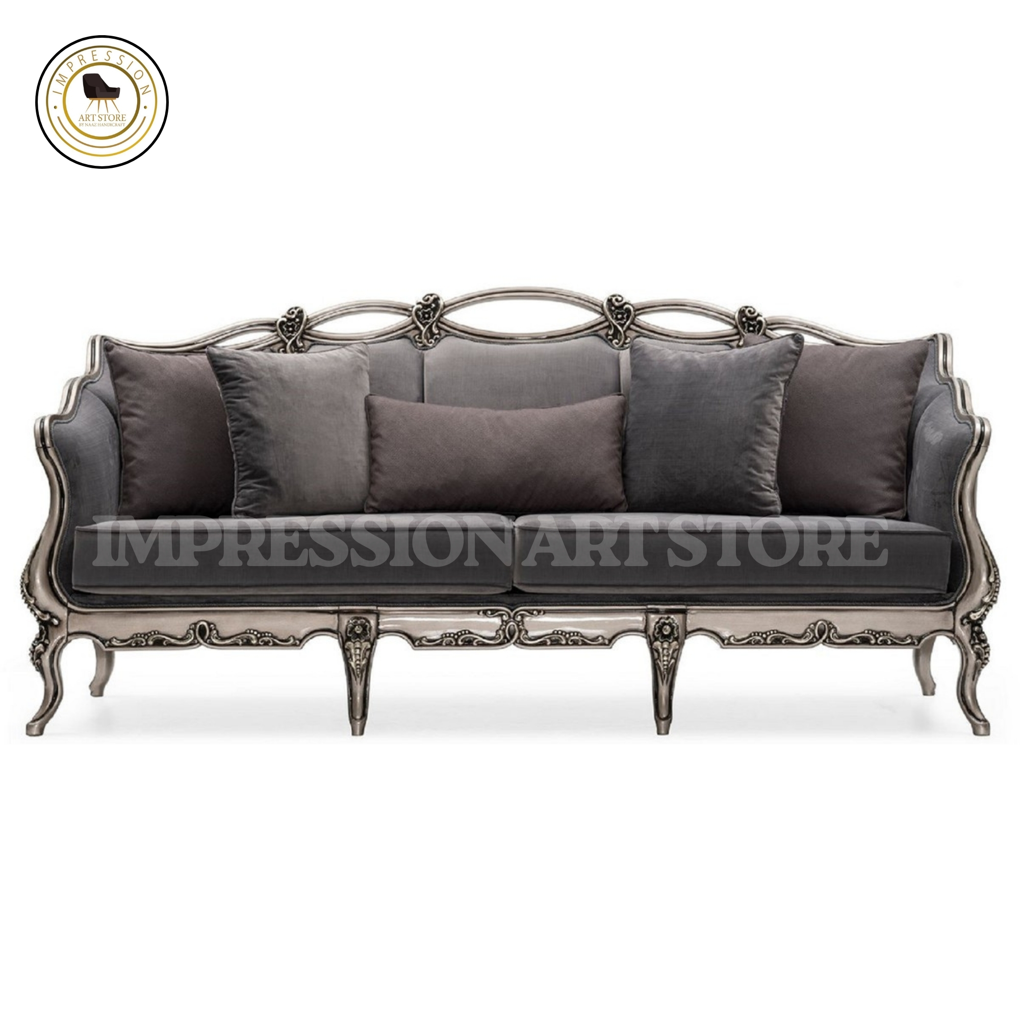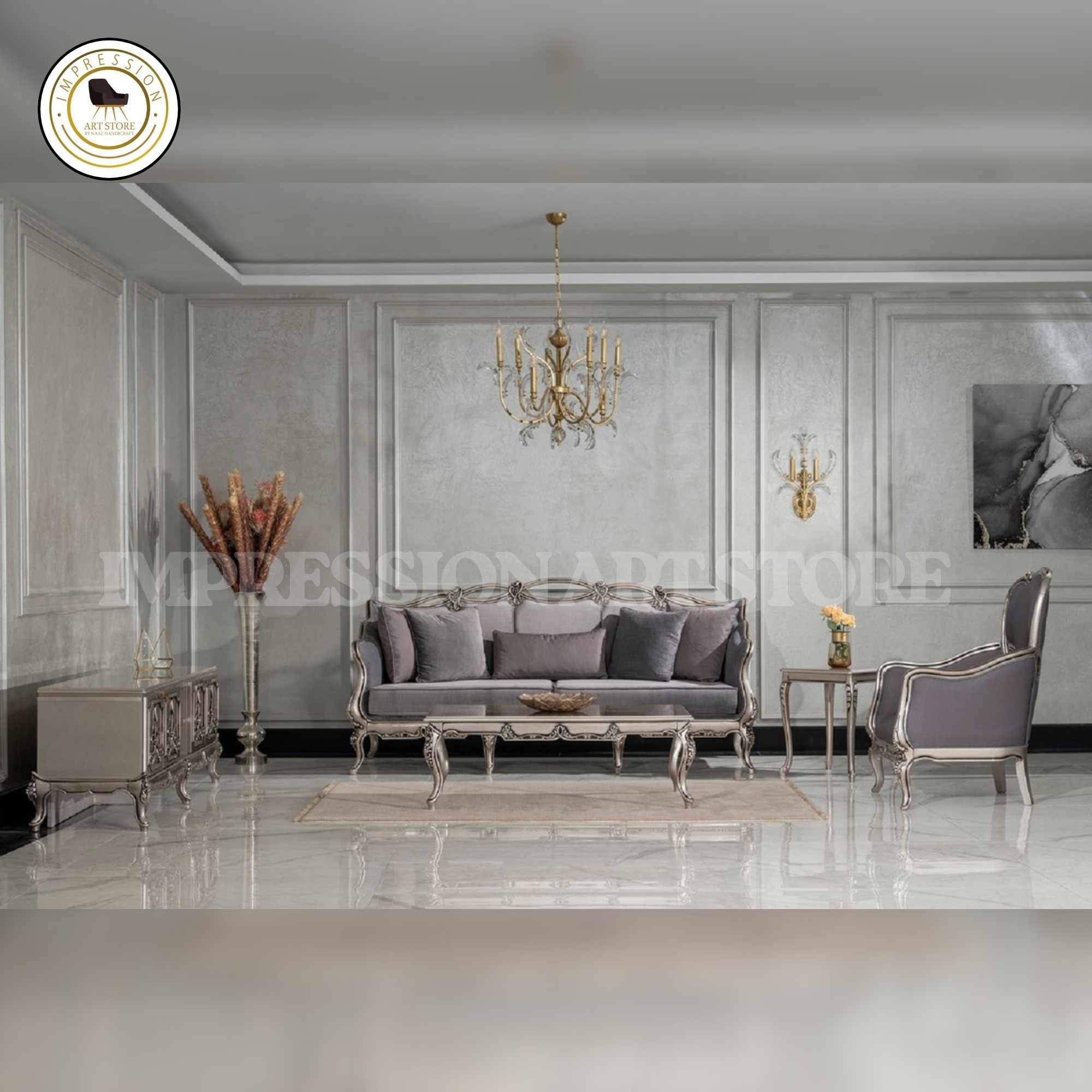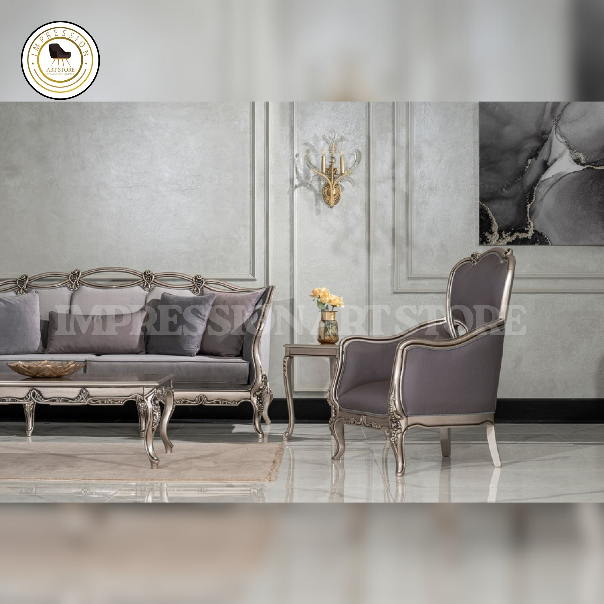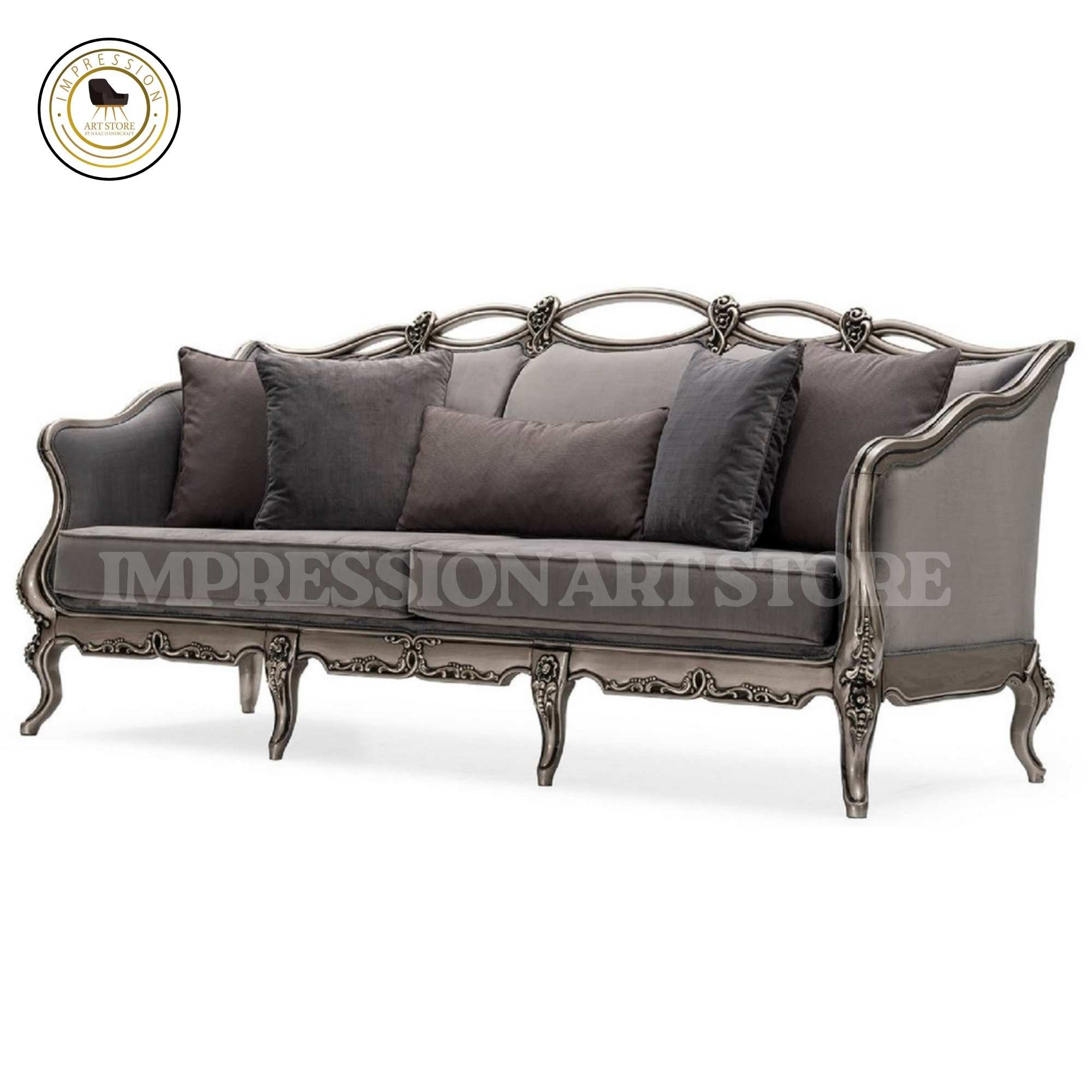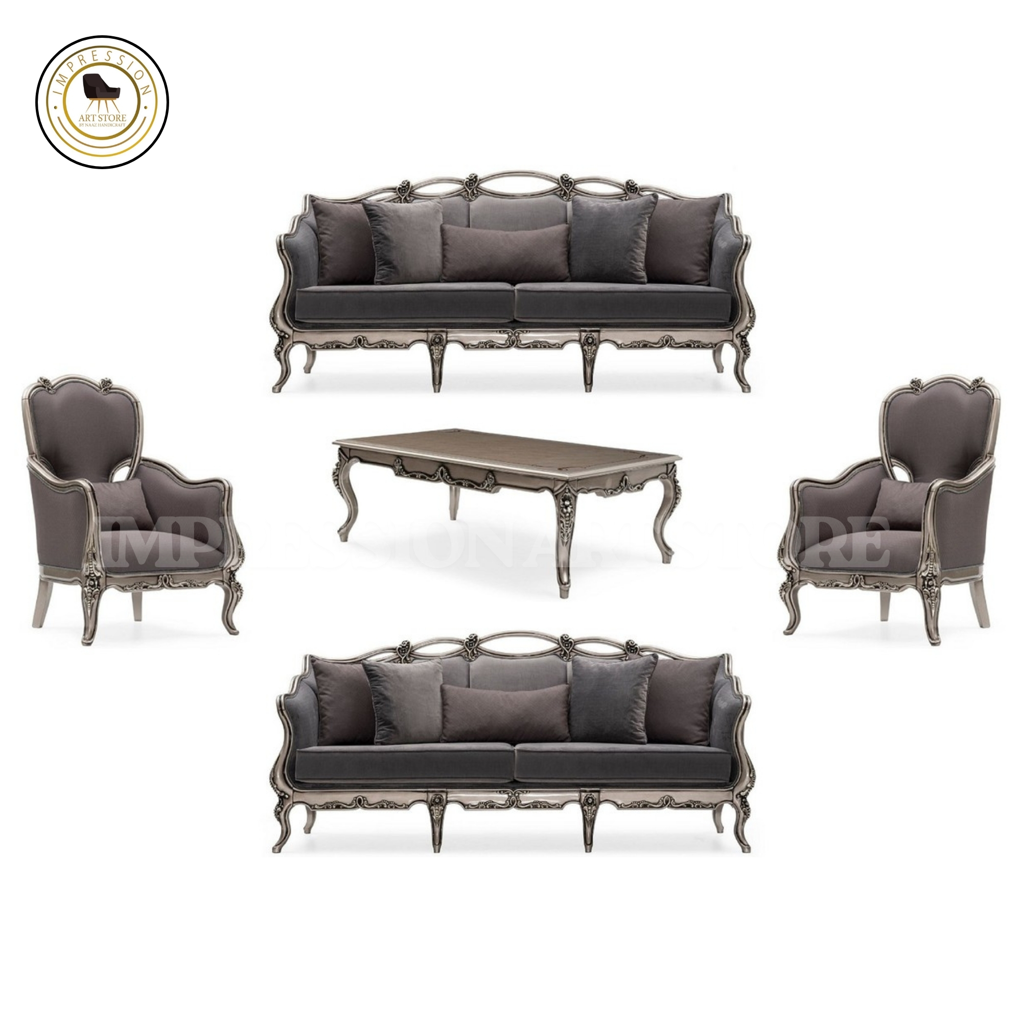Introduce an atmosphere of sophisticated grandeur and impeccable craftsmanship into your formal spaces with this magnificent Antique Silver and Charcoal Grey 8-Seater Sofa Set with Table from Impression Art Store. For over 20 years, our brand has been the definitive source for heirloom-quality wooden furniture, proudly channeling the specialized traditions of Saharanpur, Uttar Pradesh (Pincode: 247001).