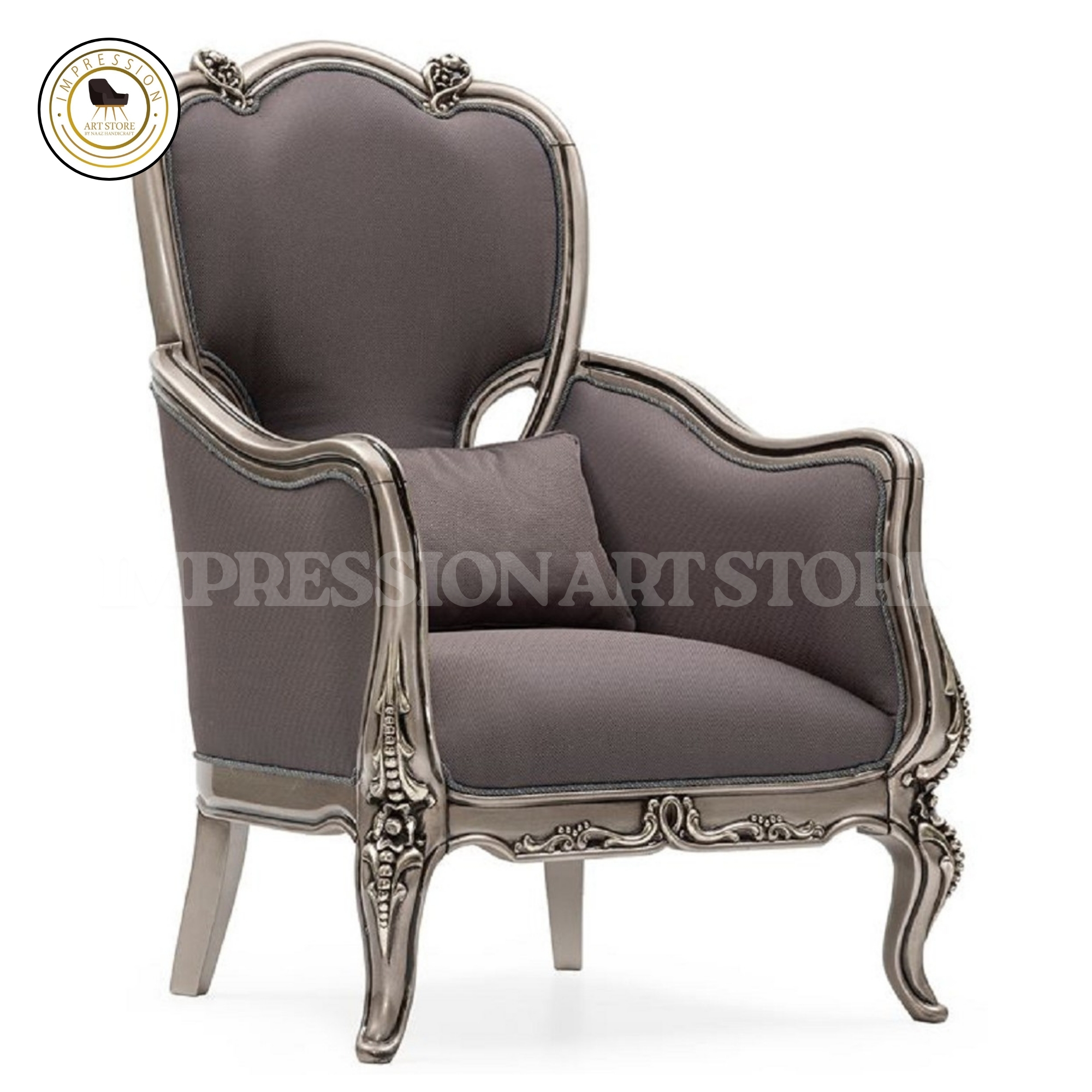 Refined Antique Silver Finish: The entire wooden frame is finished in a specialized Antique Silver or Aged Platinum Deco Paint, providing a luminous, sophisticated, and cool-toned metallic elegance that highlights the delicate carving.