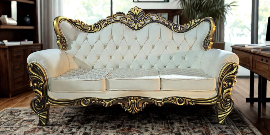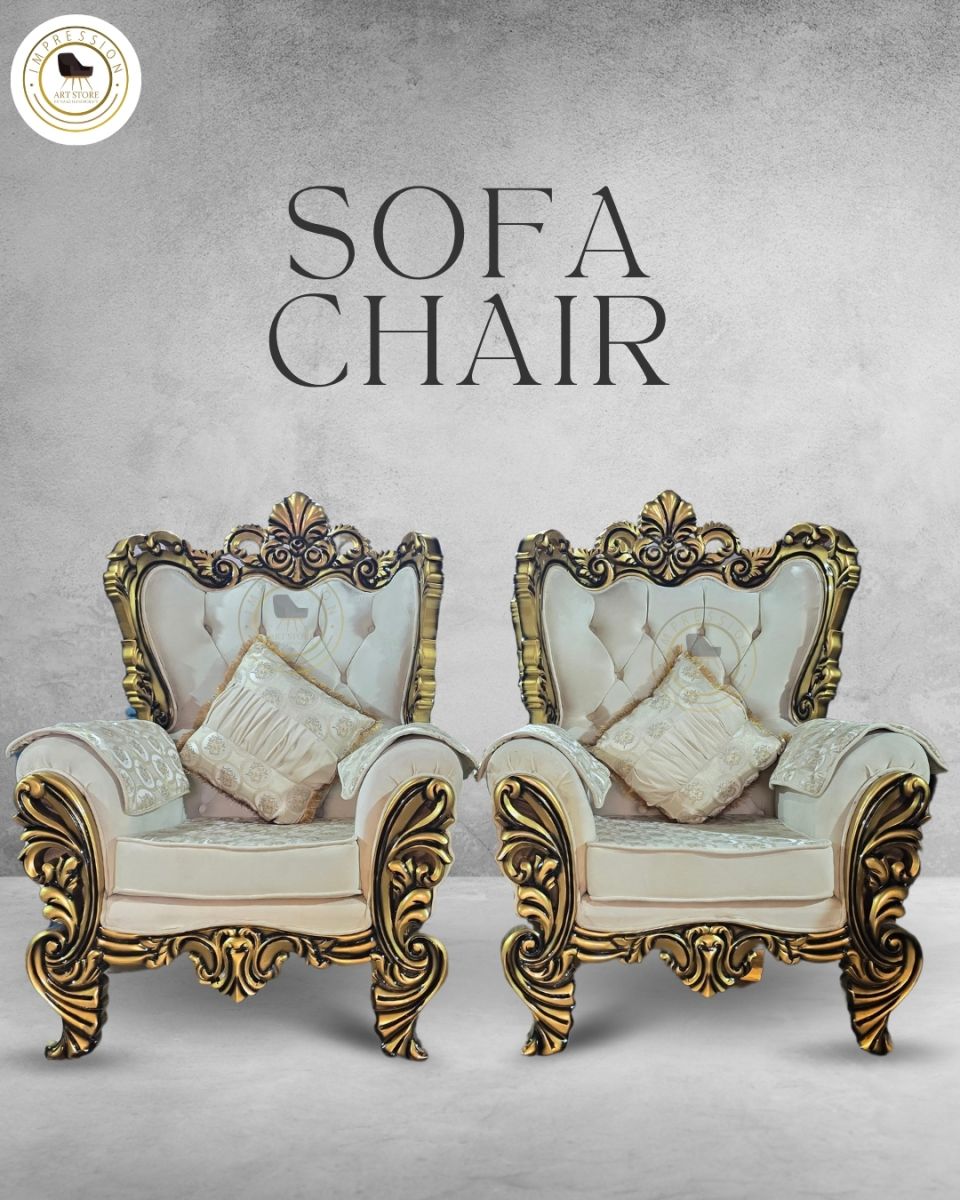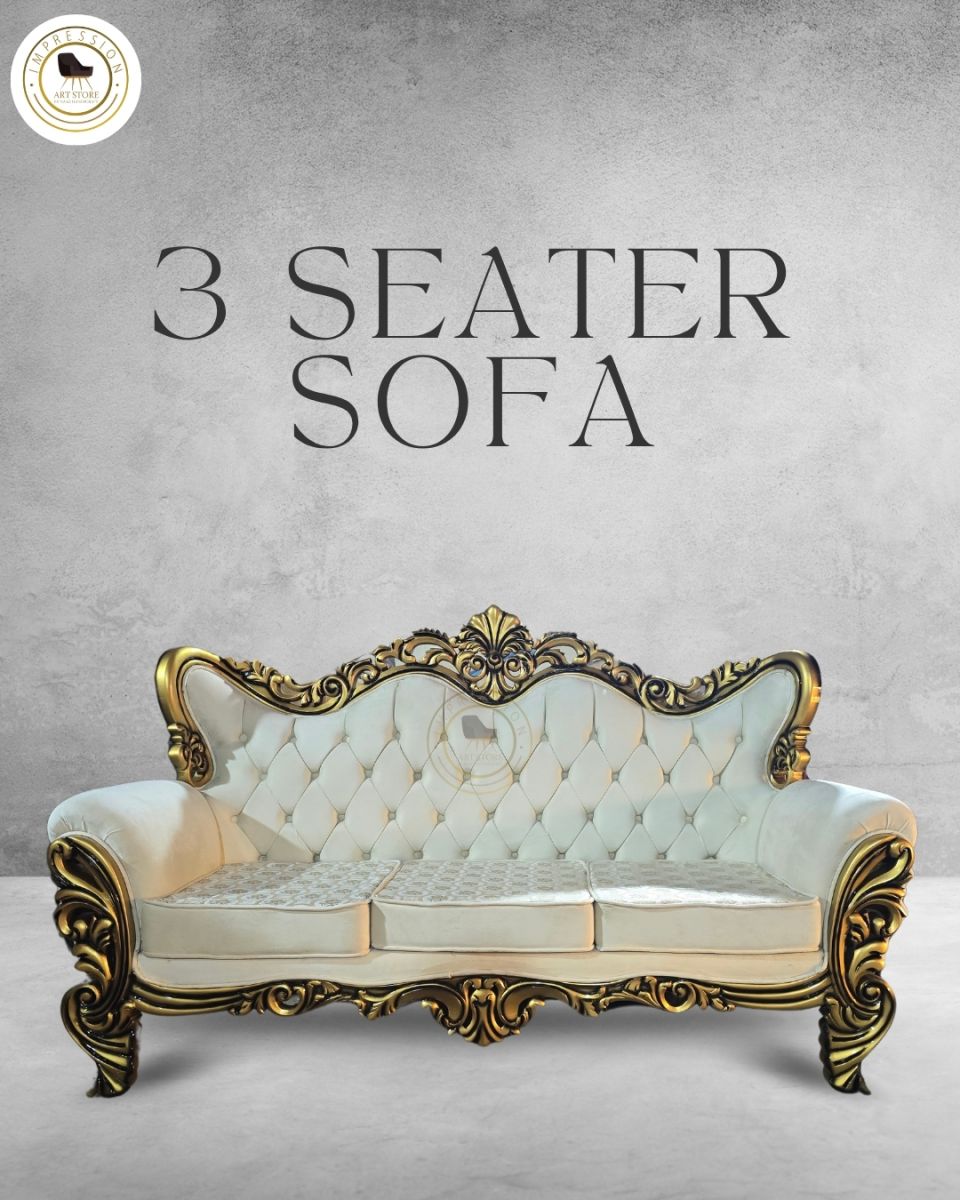 When timeless elegance meets unmatched comfort, the result is furniture that turns your home into a palace. At Impression Art Store, we proudly present our 5-seater sofa set—a regal ensemble that blends traditional craftsmanship with modern-day luxury. This set includes one 3-seater sofa and two majestic single-seater chairs, handcrafted to perfection using premium-grade teak wood and detailed handcarving work.