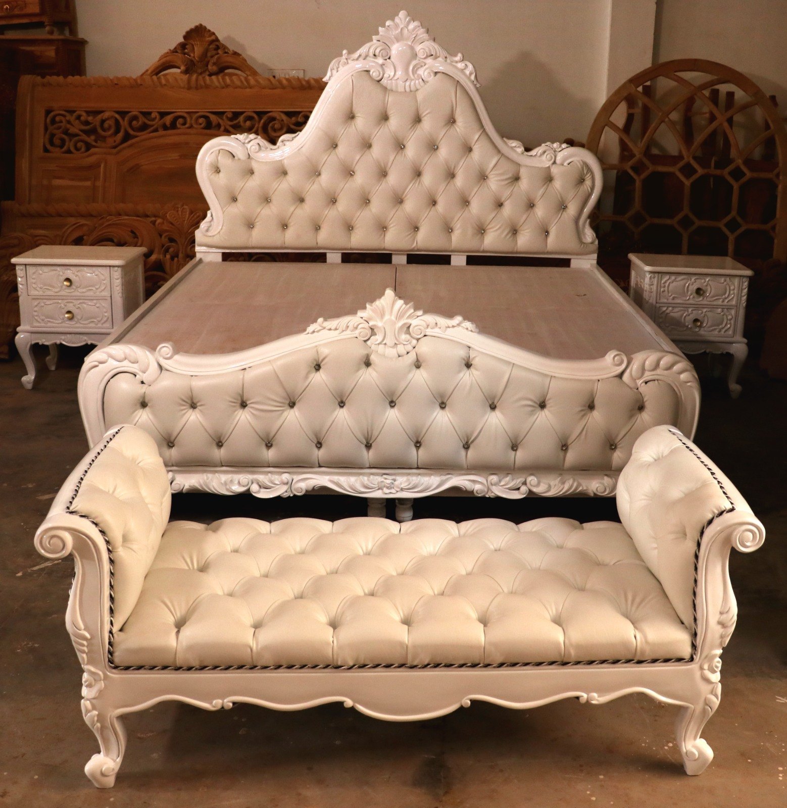 Aesthetic and Durability: The entire set is treated with a specialized Provincial Deco Finish, an antique white lacquer that enhances the depth of the carving while providing a resilient, chip-resistant surface. We use only premium solid wood, chosen for its inherent strength and stability, ensuring this piece remains a beloved part of your family's decor for decades. This luxurious furniture perfectly complements Victorian, Rococo, French Country, or traditional high-end home decor styles.